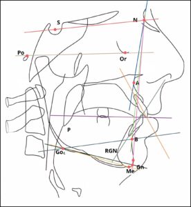 Na parte odontológica, pedimos ao paciente uma documentação ortodôntica, com fotos de rosto e perfil, e utilizamos a cefalometria para analisar seu esqueleto facial. Este exame de imagem ajuda a identificar alterações anatômicas, como a retrognatia (queixo posicionado para trás), que é um fator predisponente para a apneia. Além disso, solicitamos radiografias periapicais para avaliar a saúde das raízes dentárias e a densidade óssea, garantindo que seus dentes suportem o apoio do aparelho.