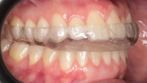 Além do material, existem variações no design, como as placas anteriores (que cobrem apenas os dentes da frente) e as placas totais. Estas placas são chamadas de “front plateau” e não são indicadas pelo risco de serem engolidas pelo paciente em caso de desadaptação e a possibilidade de extrusão dos dentes posteriores, que é quando os dentes “descem”, como se procurassem o apoio dos dentes inferiores, levando a mordidas abertas anteriores.